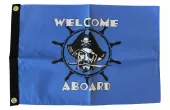 Our Pirate T-shirts are all high-quality 100% cotton, pre-shrunk shirts. Image is on back of shirt, with a small emblem on the front left chest. In stock, ready to ship!