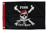 Our Pirate T-shirts are all high-quality 100% cotton, pre-shrunk shirts. Image is on back of shirt, with a small emblem on the front left chest. In stock, ready to ship!