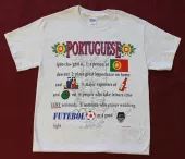 Our Portugal t-shirts are high-quality 100% cotton, pre-shrunk shirts. The arched image is on the front of the white t-shirt with the slogan "O bem da Nacao" underneath the Portugal flag. They are in stock and ready to ship!