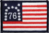 The Bennington Flag is a version of the American Flag associated with the American Revolution Battle of Bennington, from which it derives its name. Like many Revolution era flags, the Bennington features 13 stars and 13 stripes, symbolic of the 13 American colonies that were in a state of rebellion against Great Britain. The Bennington version is easily identified by a large '76' in the canton, recalling the year 1776, when the Declaration of Independence was signed. Another distinctive feature of the Bennington flag is the arrangement of the 13 stripes, with white being outermost (rather than red being outermost as in the current flag). Also, its stars have seven points each (instead of the current five).
