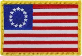 The Betsy Ross flag is an early design of the flag of the United States popularly attributed to Betsy Ross using the common motifs of alternating red-and-white striped field with white stars in a blue canton. The flag was designed during the American Revolution and features 13 stars to represent the original 13 colonies. The distinctive feature of the Ross flag is the arrangement of the five-pointed stars in a circle.