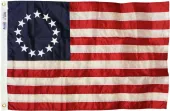 Made of a high quality polyester material, our Dura-Poly Betsy Ross flag measures 3' x 5' and includes vivid colors and an accurate design. The flag is screen-printed on a durable 150 denier shiny polyester material and is finished with a double stitched hem. The flag features a white fabric header with two brass grommets on the 3' side for easy display. The flag is best used indoors but can withstand occasional outdoor use. The authentic design is based on information from official sources.