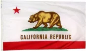 The nylon California presentation flag sets are furnished with the finest quality mountings and are suitable for any formal flag presentation. Our deluxe sets contain a beautiful, high gloss 3'x5' Nylon flag with pole hem and fringe, a furniture polished two-piece oak-finish pole that includes a solid brass screw joint, a 7.75" Fancy Spear Ornament, 5"x9' golden yellow cord and tassels, and our deluxe gold-finished Liberty flag stand. Our Presentation Flag Sets are proudly made in the USA.