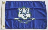 Designed for outdoor use, these beautiful long-wearing 5' x 8' Connecticut flags are crafted from the highest quality 200-denier nylon. The colors are dyed into the fabric for superior penetration and color-fastness. Attaching to a pole is easy with the canvas header and brass grommets on the 5' side. The hem on the fly end of the flag features 4 lock stitched rows to help prevent premature fraying. The authentic designs are based on information from official sources.