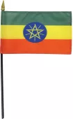 Our 4" x 6" historic Ethiopia stick flags are made from a high quality, silk-like polyester fabric. They feature a hemmed flag mounted on a black plastic 10 inch staff with a gilded spear point. These versatile stick flags can be used on tabletops and desks, to wave in parades, or to decorate flower arrangements.