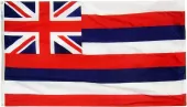 Designed for outdoor use, these beautiful long-wearing 4' x 6' Hawaii flags are crafted from the highest quality 200-denier nylon. The colors are dyed into the fabric for superior penetration and color-fastness. Attaching to a pole is easy with the canvas header and brass grommets on the 4' side. The hem on the fly end of the flag features 4 lock stitched rows to help prevent premature fraying. The authentic designs are based on information from official sources.