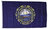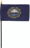 The nylon New Hampshire presentation flag sets are furnished with the finest quality mountings and are suitable for any formal flag presentation. Our deluxe sets contain a beautiful, high gloss 3'x5' Nylon flag with pole hem and fringe, a furniture polished two-piece oak-finish pole that includes a solid brass screw joint, a 7.75" Fancy Spear Ornament, 5"x9' golden yellow cord and tassels, and our deluxe gold-finished Liberty flag stand. Our Presentation Flag Sets are proudly made in the USA.