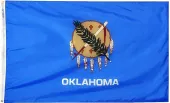 Designed for outdoor use, these beautiful long-wearing 2' x 3' Oklahoma flags are crafted from the highest quality 200-denier nylon. The colors are dyed into the fabric for superior penetration and color-fastness. Attaching to a pole is easy with the canvas header and brass grommets on the 2' side. The fly end of the flag has lock-stitched hems to help prevent premature fraying. The authentic designs are based on information from official sources.