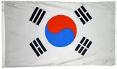 Our 8" x 12" South Korea stick flags are made from a high quality, silk-like polyester fabric. They feature a hemmed flag mounted on a black wooden 20 inch staff with a gilded spear point. These versatile stick flags can be used on tabletops and desks, to wave in parades, or to decorate flower arrangements.