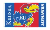 Great for use indoors or out, our 3x5 University of Kansas flags are a great way to show your support. These single-reverse, medium-knit polyester flags are vibrantly colored with two brass grommets on the 3 foot side. This flag has been approved by Collegiate Licensed Products and the University.