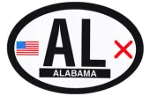 Vinyl Alabama state map outline stickers. With adhesive backing, these stickers adhere to any smooth surface. Decorate your car, RV or any other exterior surface. Sticker measures approximately 4" x 6".