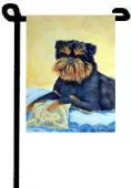 The Garden size flag is made from a 100% polyester material. Two pieces of material have been sewn together to form a double sided flag. This allows the text and image to be seen the same from both sides. This flag is fade resistant and weather proof. The flag measures approximately 11 inches x 15 inches (garden stand sold separately).