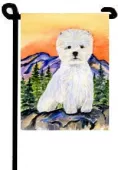 The Garden size flag is made from a 100% polyester material. Two pieces of material have been sewn together to form a double sided flag. This allows the text and image to be seen the same from both sides. This flag is fade resistant and weather proof. The flag measures approximately 11 inches x 15 inches (garden stand sold separately).