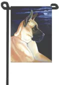 The Garden size flag is made from a 100% polyester material. Two pieces of material have been sewn together to form a double sided flag. This allows the text and image to be seen the same from both sides. This flag is fade resistant and weather proof. The flag measures approximately 11 inches x 15 inches (garden stand sold separately).