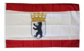 Our rectangular patch features the Berlin flag with a gold embroidered border. The patch can be sewn on or ironed on. Actual size is approximately 2.25" x 3.25".