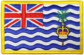 Our shield patch features the British Indian Ocean Territory flag with a gold embroidered border. The patch can be sewn on or ironed on to most fabrics. Actual size is approximately 2.5" x 2.75".