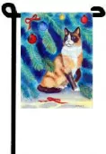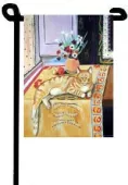 The Garden size flag is made from a 100% polyester material. Two pieces of material have been sewn together to form a double sided flag. This allows the text and image to be seen the same from both sides. This flag is fade resistant and weather proof. The flag measures approximately 11 inches x 15 inches (garden stand sold separately).