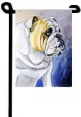 The Garden size flag is made from a 100% polyester material. Two pieces of material have been sewn together to form a double sided flag. This allows the text and image to be seen the same from both sides. This flag is fade resistant and weather proof. The flag measures approximately 11 inches x 15 inches (garden stand sold separately).