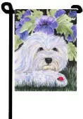 The Garden size flag is made from a 100% polyester material. Two pieces of material have been sewn together to form a double sided flag. This allows the text and image to be seen the same from both sides. This flag is fade resistant and weather proof. The flag measures approximately 11 inches x 15 inches (garden stand sold separately).