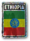 Our rectangular patch features the Ethiopia flag with a gold embroidered border. The patch can be sewn on or ironed on. Actual size is approximately 2.25" x 3.25".