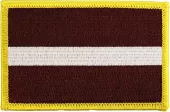 Our shield patch features the Latvia flag with a white embroidered border. The patch can be sewn on or ironed on. Actual size is approximately 2.5" x 2.75".