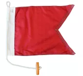 The nautical code letter B (Bravo) flag by itself indicates "I am taking in or discharging or carrying dangerous goods."