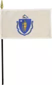 Our 3" x 4.5" reflective decals let you proudly display the Massachusetts flag and the USA flag on either side of the state's two-letter postal abbreviation. The decals have a self-adhesive backing for easy application on the exterior of a car or motorcycle.