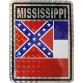 Our 3" x 4.5" reflective decals let you proudly display the Mississippi flag and the USA flag on either side of the state's two-letter postal abbreviation. The decals have a self-adhesive backing for easy application on the exterior of a car or motorcycle.