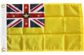 Our shield patch features the Niue flag with a gold embroidered border. The patch can be sewn on or ironed on to most fabrics. Actual size is approximately 2.5" x 2.75".
