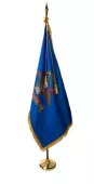 Our rectangular patch features the North Dakota flag with a gold embroidered border. The patch can be sewn on or ironed on to most fabrics. Actual size is approximately 2.25" x 3.25".