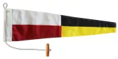 Our 2.25"x4.5" rectangular decal features the nautical pennant #9 printed on a reflective background for optimal visibility. The sticker has a self-adhesive backing for easy application to the exterior of a car, motorcycle or any other smooth surface. Made in the USA.