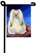 The Garden size flag is made from a 100% polyester material. Two pieces of material have been sewn together to form a double sided flag. This allows the text and image to be seen the same from both sides. This flag is fade resistant and weather proof. The flag measures approximately 11 inches x 15 inches (garden stand sold separately).