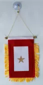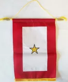 We are pleased to provide a selection of window-hanging flags that are made in the USA! The Three-star Banner window hangers feature extra-long, elegant fringe, measure approximately 3" x 4" (excluding fringe) and include a gold cord attached to a sturdy cross bar. The hand made mini banner can be displayed on a window or mirror with the supplied suction cup, or mount directly over your rear-view mirror.