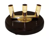 When only the best will do. This elegant solid mahogany stand is buffed to a gleaming finish and trimmed with polished brass fittings. Bore accepts poles 1 1/4" in diameter.