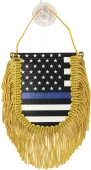 The Thin Blue Line (USA) decals are printed on a high quality reflective material which includes an 1/8" border surrounding the flag design. The 2.25" x 4" rectangular decals have a self-adhesive backing for easy application on the exterior of a car, motorcycle or any other smooth surface.