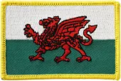 Our flag patches feature the flag of Wales flying next to the name, and can be sewn on or ironed on. The patch measures approximately 1.75" x 4.75".