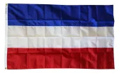 Our rectangular patch features the historic Yugoslavia flag with a gold embroidered border. The patch can be sewn on or ironed on. Actual size is approximately 2.25" x 3.25".